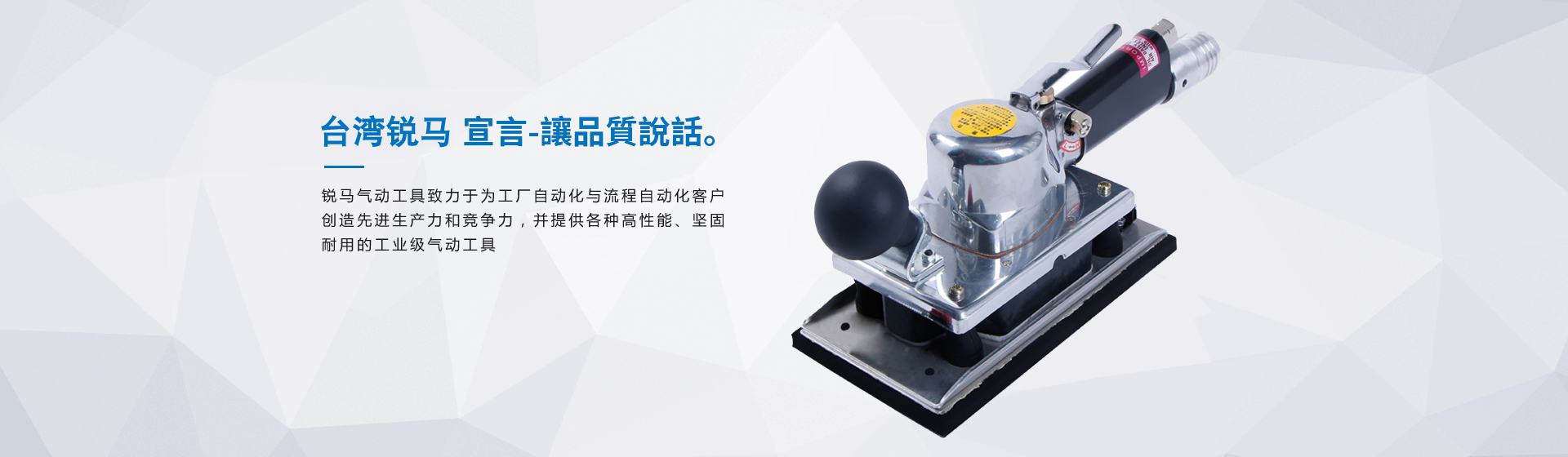 銳馬氣動(dòng)工具廠家是臺灣專業(yè)制造氣動(dòng)工具廠"筌誠機(jī)械工業(yè)",30多年來致力于氣動(dòng)/電動(dòng)工具領(lǐng)域之研發(fā),生產(chǎn)和銷售,努力提升本身產(chǎn)品價(jià)值,在臺灣氣動(dòng)工具制造領(lǐng)域始終處于領(lǐng)先地位,并成功銷往國際市場。